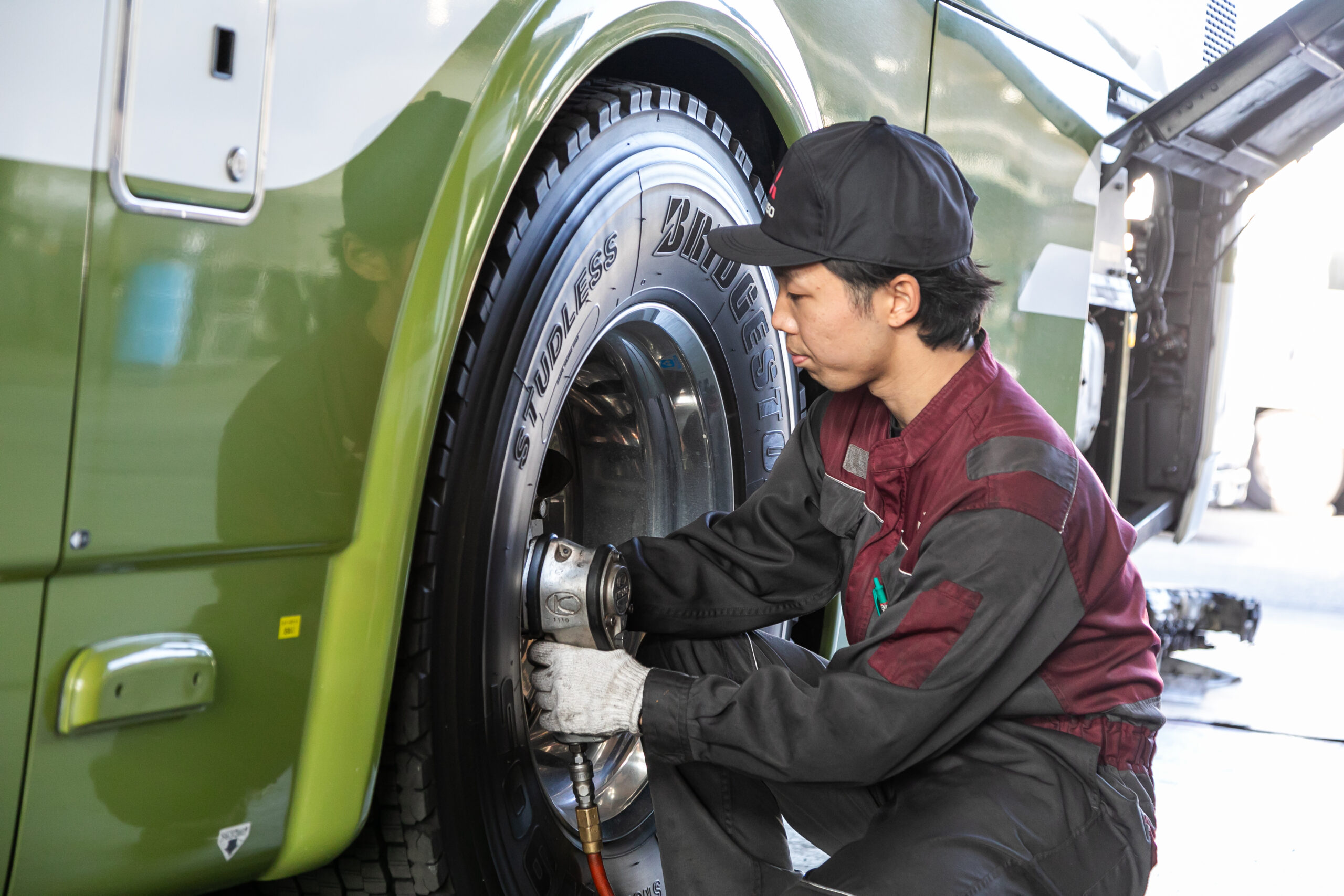 お客様のビジネスを支える大型商用車(トラック・バス)の点検、整備、修理全般をお任せします。具体的には、エンジン、トランスミッション、ブレーキなどの主要部品の分解・点検、オイル交換やタイヤ交換といった消耗品の交換など、幅広い作業に携わります。お客様の大切な車両を最高の状態に保ち、安全性と運行効率を維持することが私たちの使命です。最先端の設備が整った清潔な工場で、安全第一で作業に取り組める環境です。